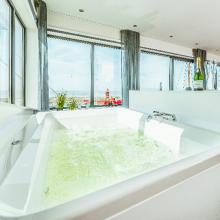 Naast de luxe van een fantastisch 2 persoons- boxspring treft u in uw kamer een badkamer met regendouche, een dubbele wastafel, een toilet, een gezellig zitje met minibar en een televisie aan. Voor uw optimale ontspanning en om uw wellness beleving te completeren is de kamer voorzien van een luxe jacuzzi. De omgebouwde trechter is daarmee een bijzonder object.